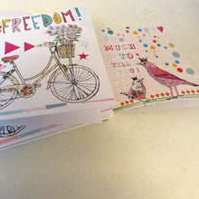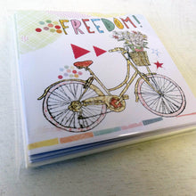 1. Freedom: This card features a vintage bicycle with a basket on the front! The wording reads ‘freedom’.
