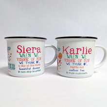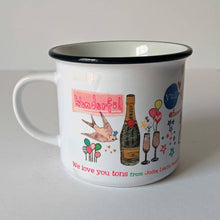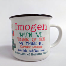 Personalise the mug with any name, the 3 things that make you think of them and a sign off message - and we will create appropriate illustrations to match.