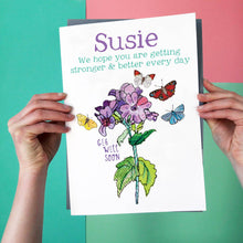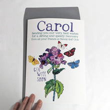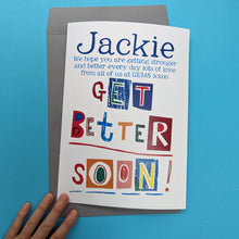 A great big personalised Get Well Soon card designed especially for cheering someone up and wishing them a speedy recovery.