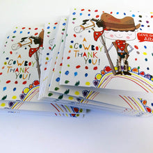 Each pack can be personalised with any name and the inside is left blank for you to complete your own message together. The wording on this design reads: A cowboy thankyou! Love from [name of your choice].