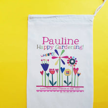 Keep your gardening tools neat and tidy with our personalised storage bag. These sacks make great practical gifts for a handyman or green fingered gardening friends and relatives for their gardening gloves, twine, seeds, trowels, hand fork or secateurs, whether it's for the allotment or garden personalise with the wording of your choice.