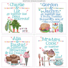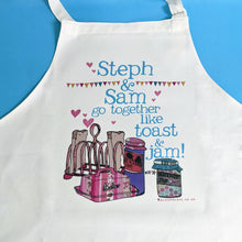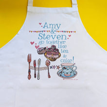 A wonderful gift for a 2nd 'cotton' wedding anniversary, or the perfect present for a special couple who enjoy spending time together in the kitchen. These personalised ‘Go together like...’ aprons can be personalised with any two names and any two foods - you can choose from our list or choose your own food combination which best suits the couple! A date can also be included - whether that's the date you first met, your wedding anniversary, Valentines Day, or any date that is very special!
