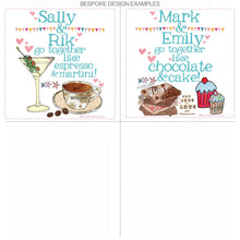 The text reads '[name of your choice 1] & [name of your choice 2] go together like [food combination 1] & [food combination 2]! [optional date].