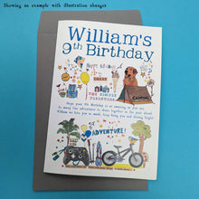 Please complete the 'note to seller' box with the name and age you require and the 3 lines of wording for the front - and if you've chosen the bepoke option, let me know the things you'd like including.