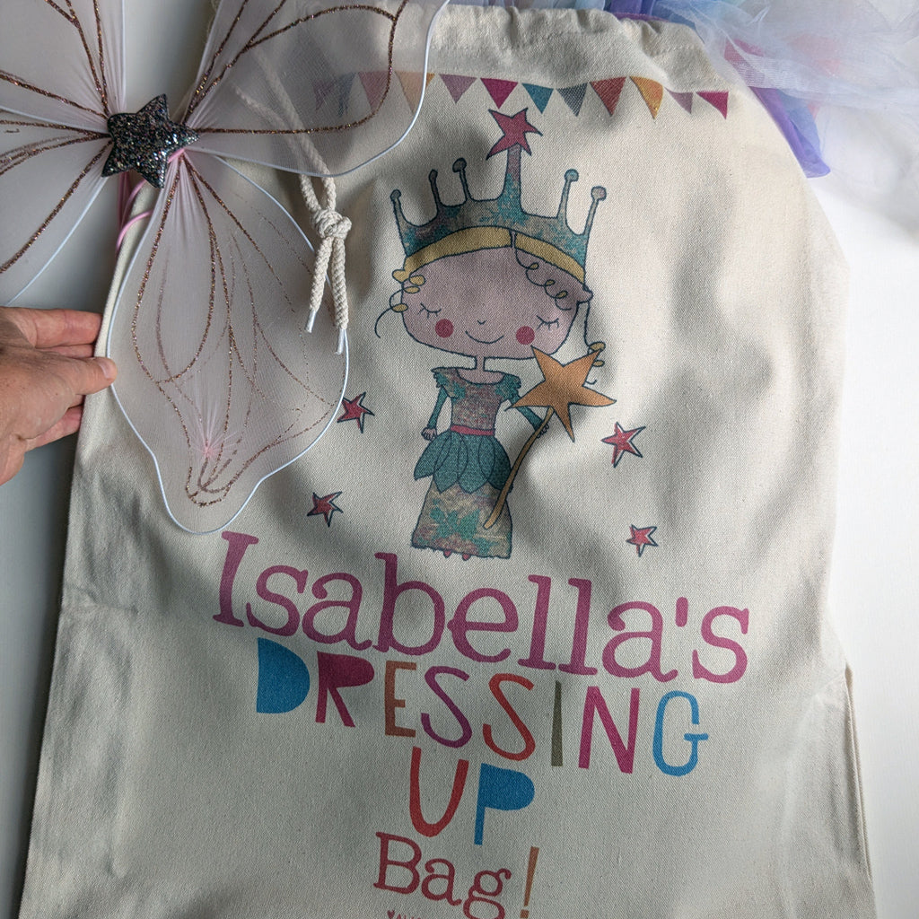 The princess design - the wording on this sack reads '[Name of your choice] is a beautiful princess!'