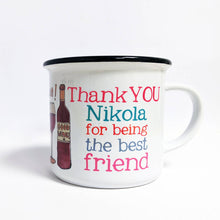 Just fill in the 'note to seller' box at the checkout with the wording you require on your mug;