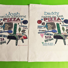 Please complete the 'note to seller' box with the name and wording you require - ie Daddy, we love you with every pizza our hearts, Love from Tom & Libby