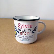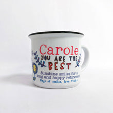 Just fill in the 'note to seller' box at the checkout with the name and personalised wording you require on your mug.Ceramic. Dishwasher safe. Mug is approx 8cm in height, 8cm diameter.