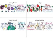 Illustrated with happy flowers and the words Happy retirement [name of your choice] You are the best [personalised sentence of your choice] [sign off message]