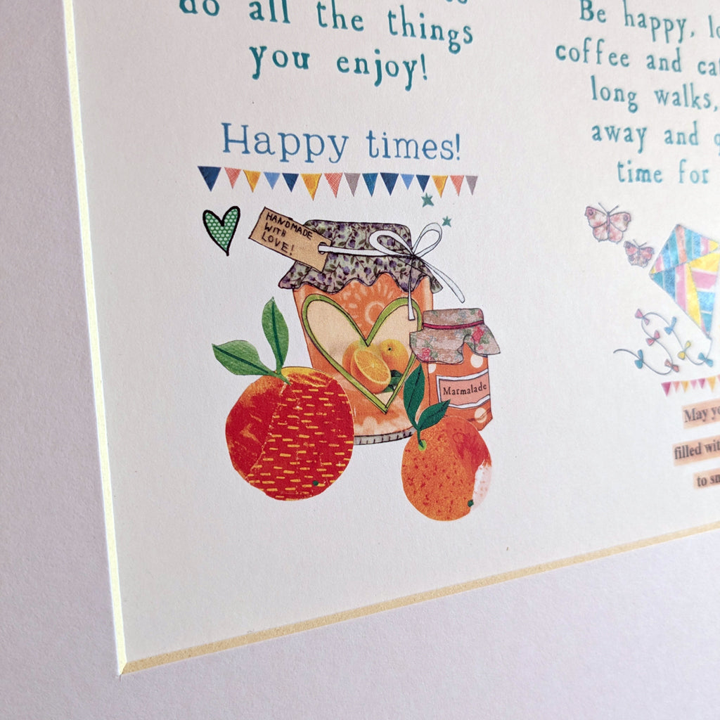 Celebrate their retirement with a wonderful Alice Palace print. Please note the 4th illustration has the set wording 'May your future be filled with many things to smile about' which is part of the illustration.