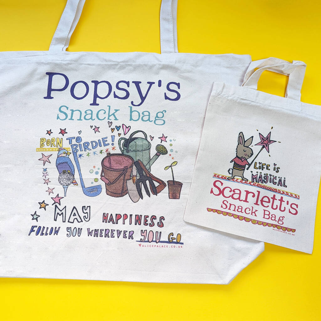 A small personalised bag, designed especially for toddlers and small children to keep their precious snacks in!