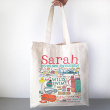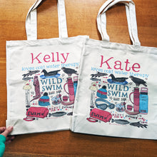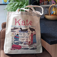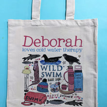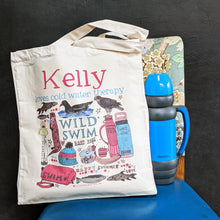 A personalised swimming bag. A great gift for someone who loves to go for a wild swim in either fresh or salt water! Excellent for storing your essentials.