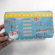 The gift wrap is sold in sheets which are folded for posting, each measuring 50cm x 70cm.